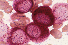 特殊染色所見:優位の芽球はペルオキシダーゼ(PO)染色に陰性より、最未分化芽球(M0)や単芽球(M5a)、また巨核芽球(M7)やリンパ芽球(ALL)も鑑別細胞になります。