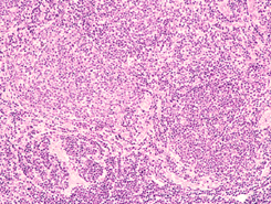 リンパ節生検のHE染色ではろ胞様構造がみられました。