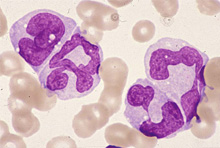 疾患では異常なほどの分葉(lobulation)傾向がみられることが多く、好中球に類似しますが、やはり核網の繊細さが決め手になりま