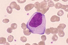 | 細胞化学所見から | 単芽球はPO染色に陰性、EST染色に強陽性を呈し、NaFに阻害された. EST染色ではα-NB染色に顆粒状、α-NA染色にび慢性陽性がみられる. |