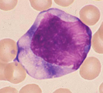 リンパ球とほぼ同大ですが、異なる所見は独特な核形不整(核中心性への切れ込み)です。