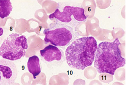 7.好酸球 8.幼若好酸球 9.好塩基球 10.単球 11.リンパ球