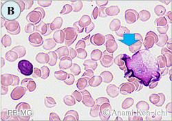 | 【助言1】 | マイクロティナーにEDTAが添加されたものは形態変化を起こすことが考えられます。 形態変化は一般に1時間位から起こるといわれますので、せめて30分以内に標本作製を行うべきかと考えます。その形態異常とは、細胞や核の萎縮、顕著な核形不整、クロマチンの粗剛化、細胞質の顆粒減少、アウエル小体の減少、空胞化などを経験するため、形態診断には注意を払うことになります。もし使用された場合は上記の形態変化を念頭に置くことになります。 また、ヘパリンを添加したマイクロティナーはヘパリンが塩基性色素(メチレンアズール)と結合しますので標本全体が赤っぽく染まり細胞の判定ができません。 |