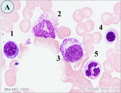 「細胞同定」は、末梢血におけるMG染色の細胞同定と骨髄における特殊染色の所見から細胞を判読することに挑戦します。
