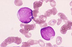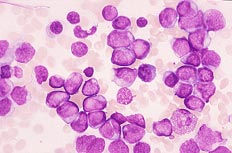 | 現病歴 | 全身倦怠感にて来院、貧血、血小板減少があり、末梢血に芽球様細胞がみられたため入院となる. 肝腫 (+)、脾腫 (−)、リンパ節腫 (−) |