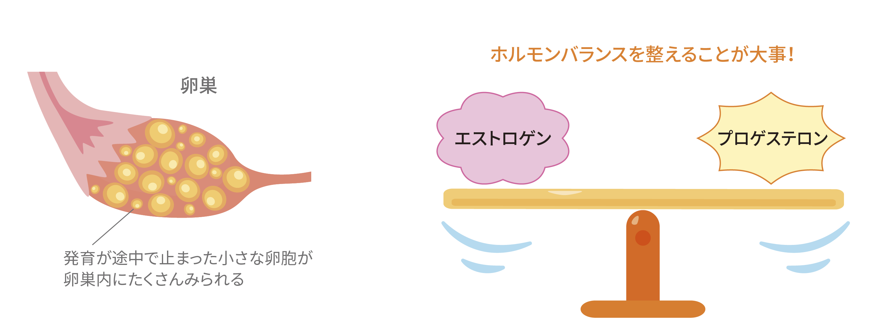 卵巣の中で卵が育ちきらず、小さな卵がいくつか残るため、『多囊胞(たのうほう)』という名称がついています。